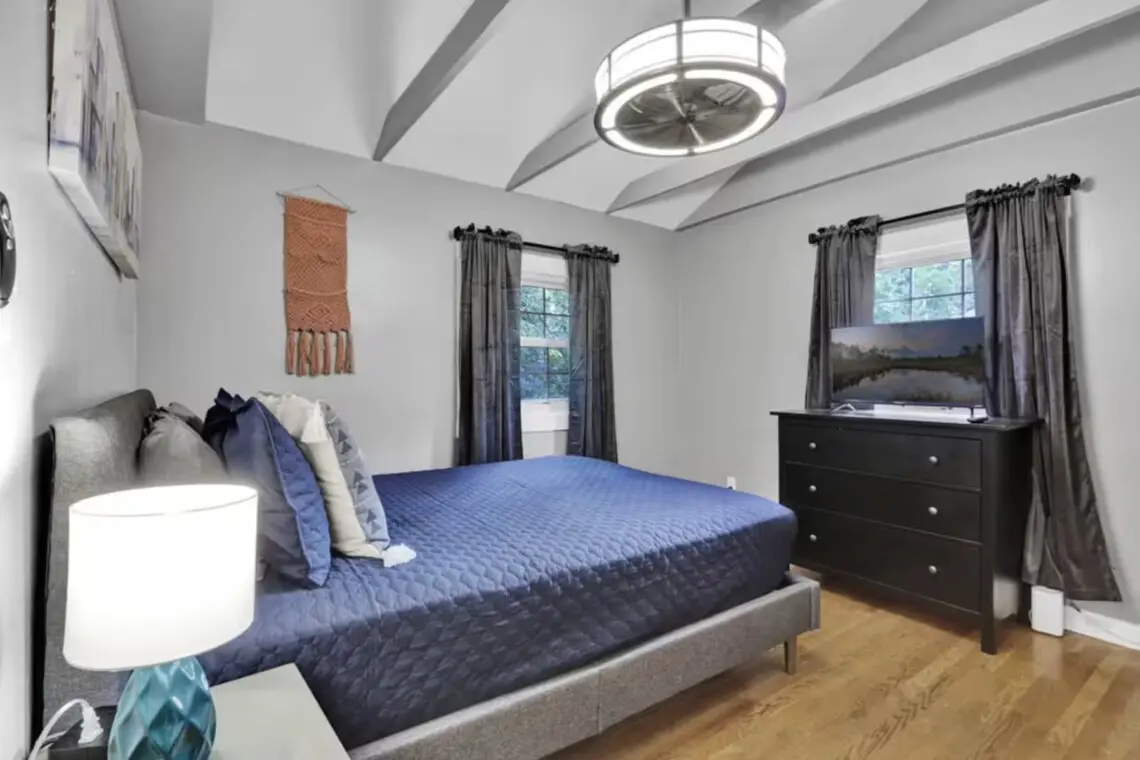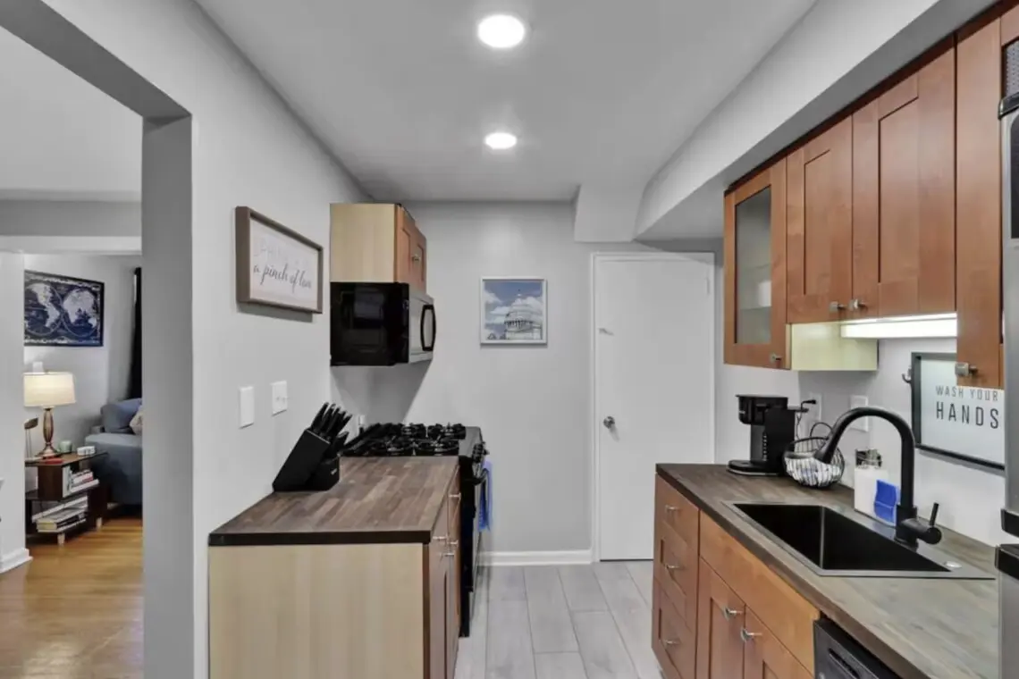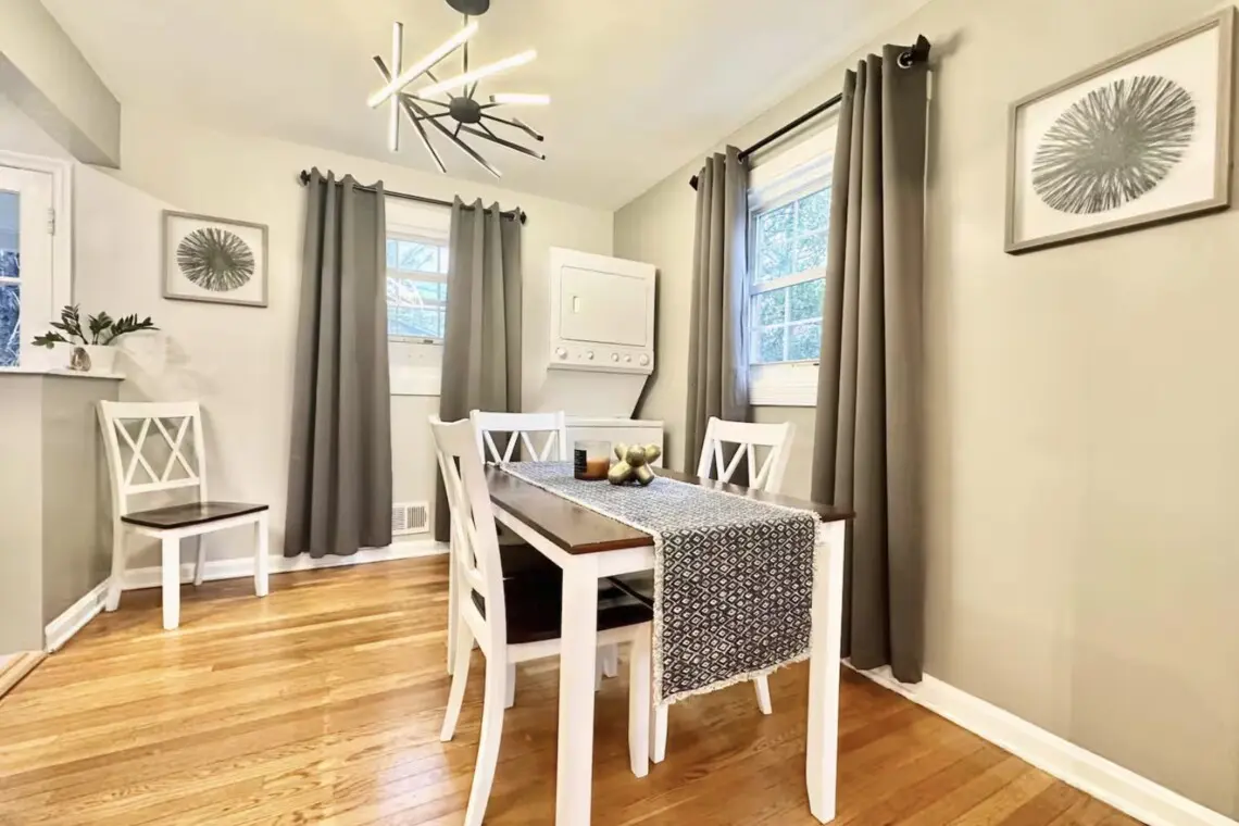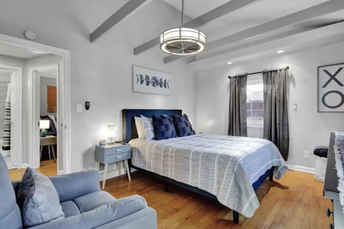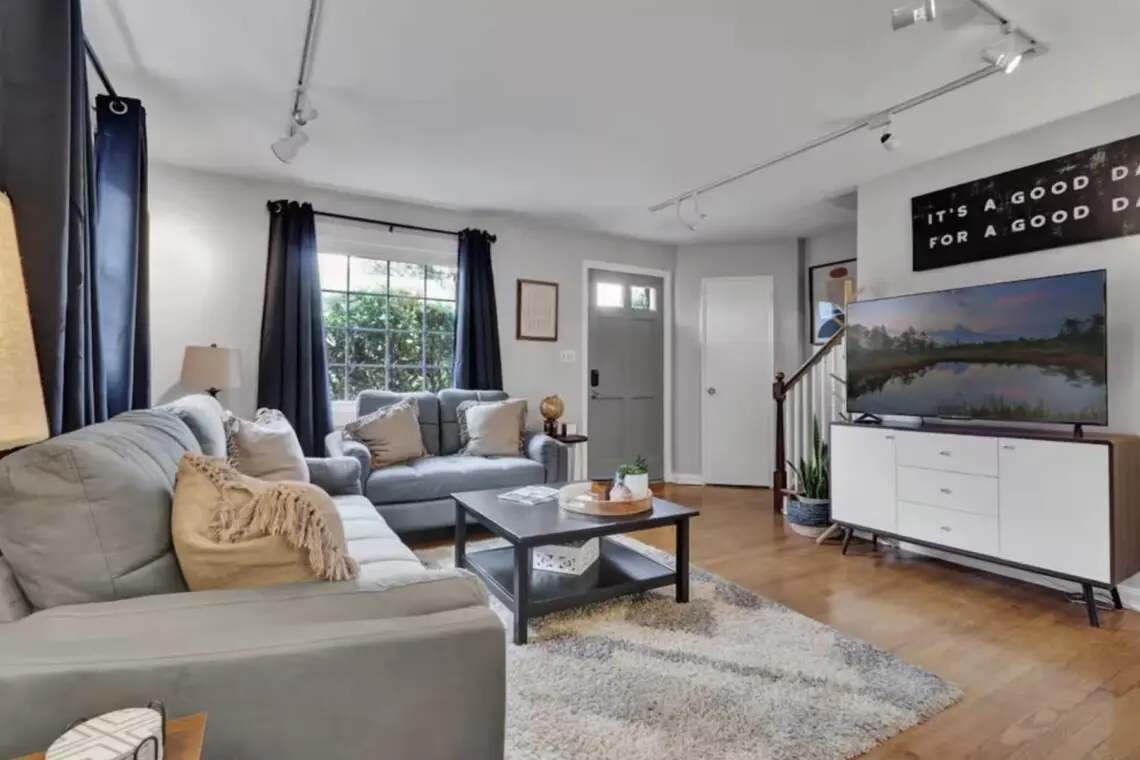 Welcome to Alexandria Gem, a completely renovated townhome in the heart of Del Ray, near Old Town Alexandria. Professionally designed for guests, it’s just a half-mile walk to The Braddock Metro Station, providing easy access to Amazon HQ2, Potomac Yard, and Arlington National Cemetery. A brisk 10-minute walk takes you to Del Ray, where you’ll find an impressive selection of local bars and restaurants. Enjoy easy access to DC via Metro. Park two cars (in tandem) in the private drive. King beds.
