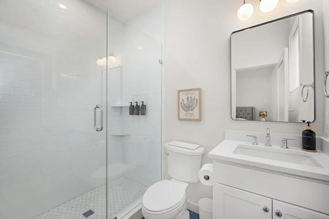 Each bathroom features distinctive designer hexagon floor tile—a thoughtful design touch throughout the home!