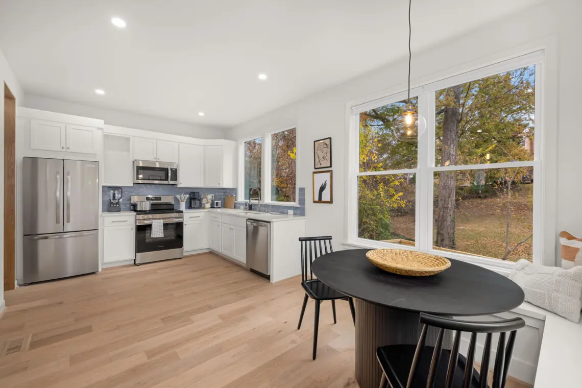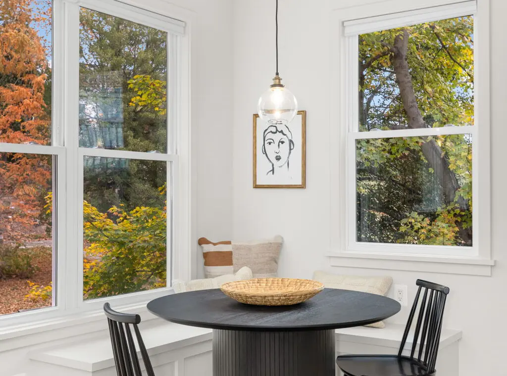 – Charming built-in breakfast nook with banquette seating and pedestal table (seats 6)