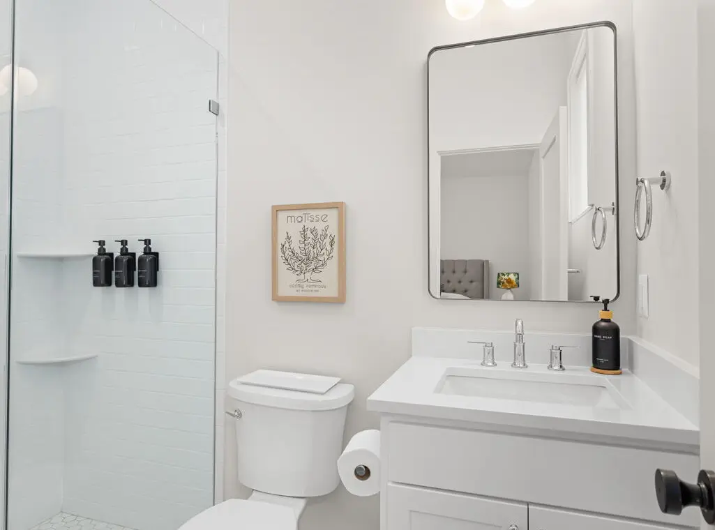 – Bedroom 3: Queen bed with bright natural light (doesn’t feel like a basement!), standard closet, and private en-suite bathroom with spacious walk-in shower